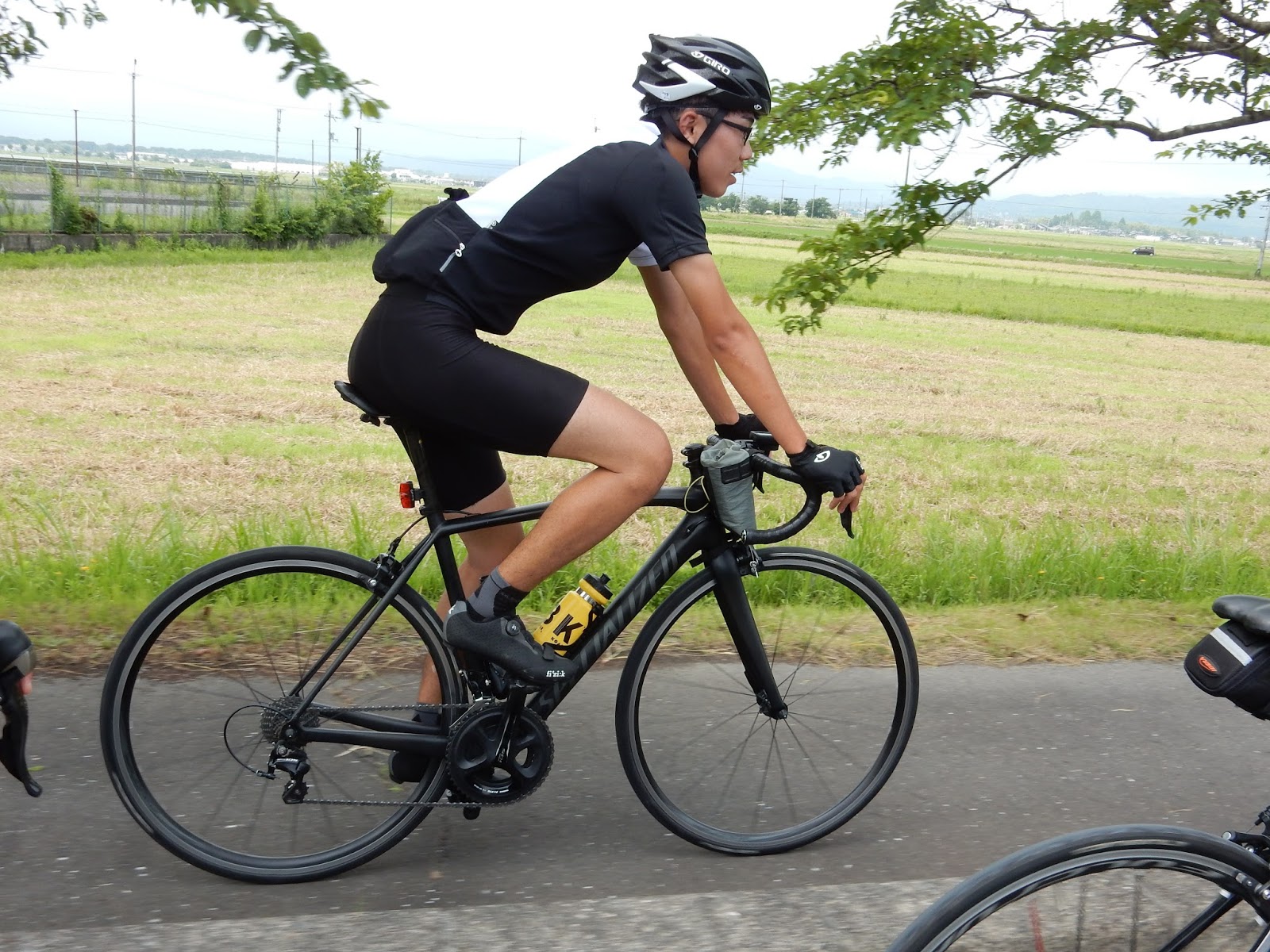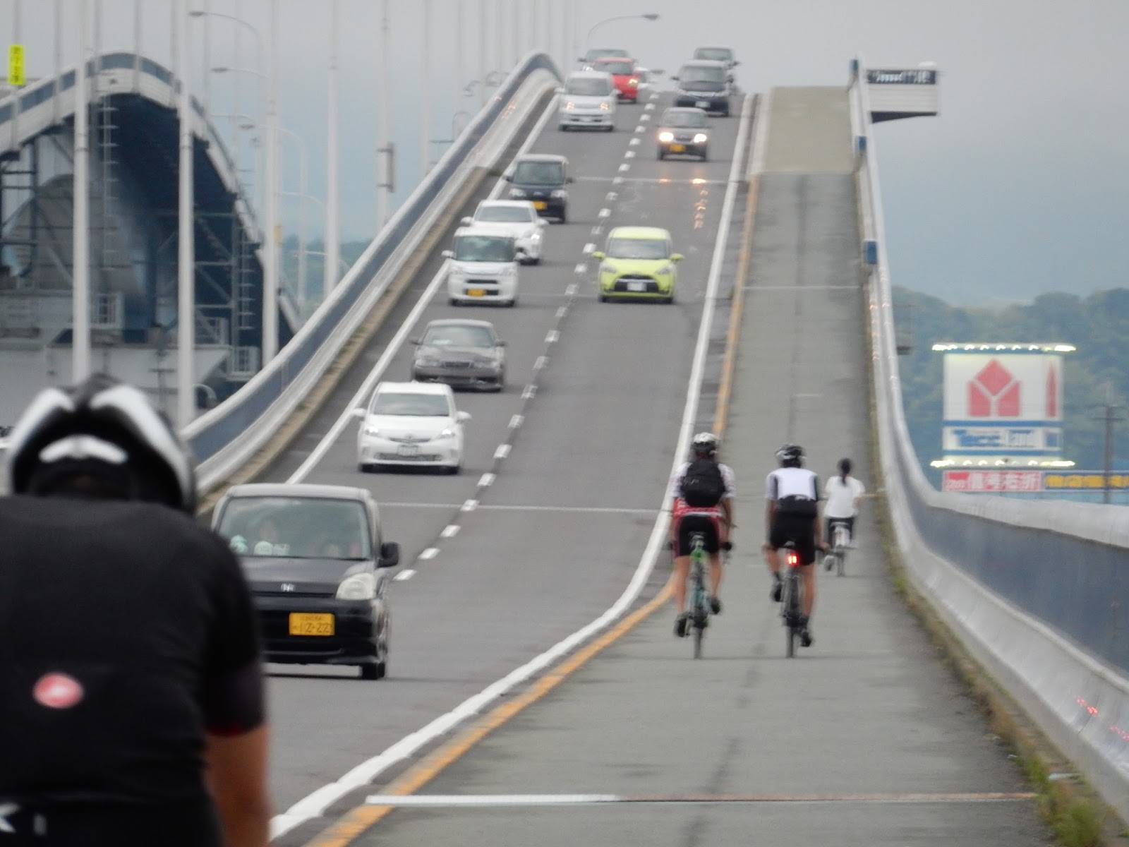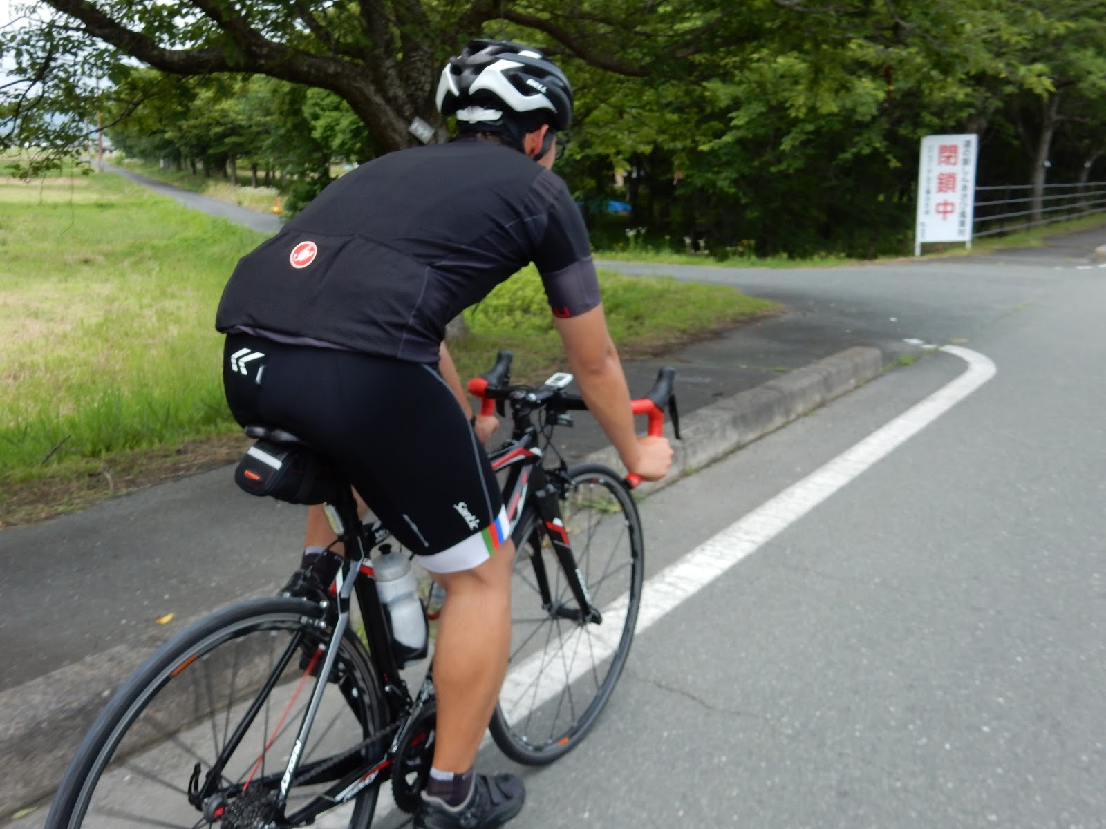 前の自転車の後輪と白線ぐらいしか見るもんがない。苦行だ…